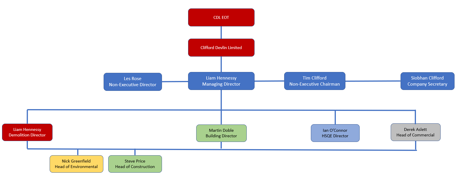 A full company organisational chart is available on request.