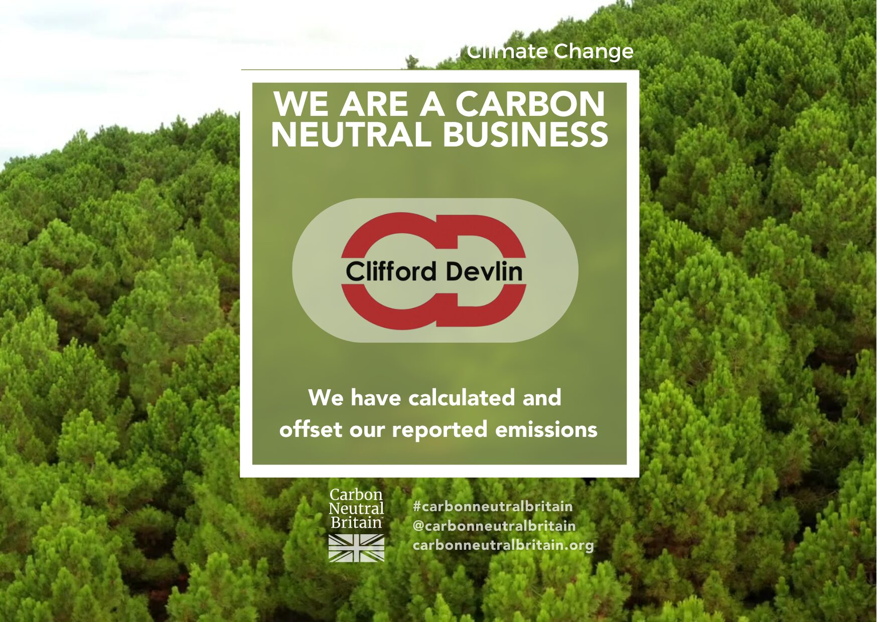 Our Carbon Reduction Plan (CRP) commits us to halving emissions by 2030 and achieving Net Zero by 2050. By accurately measuring, offsetting, and committing to reduce our emissions each year, Clifford Devlin is not only Carbon Neutral today but also aligned with both Science Based Targets and UK Government requirements for carbon reduction. This is an important step forward, and we will continue to take action to reduce our carbon emissions as a business.