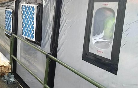 The decontamination involved removal of insulation and residues from older pipework installations located throughout service ducts and tunnels in the unit's basement and the electrical plant room. Following disconnection of live services, the areas were sheeted over to create smoke-tested airtight enclosures complete with negative pressure units.