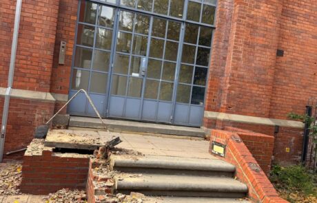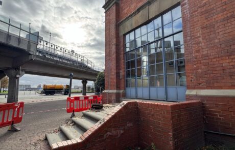 The site was secured with 2.4m plywood hoardings with vehicular gates installed and the buildings were fully scaffolded on all elevations and clad in monarflex sheeting. Soft strip consisted of the removal of non-structural elements including partitions, floor coverings, doors and frames, M&E plant and pipework, furniture and fixtures and fittings.