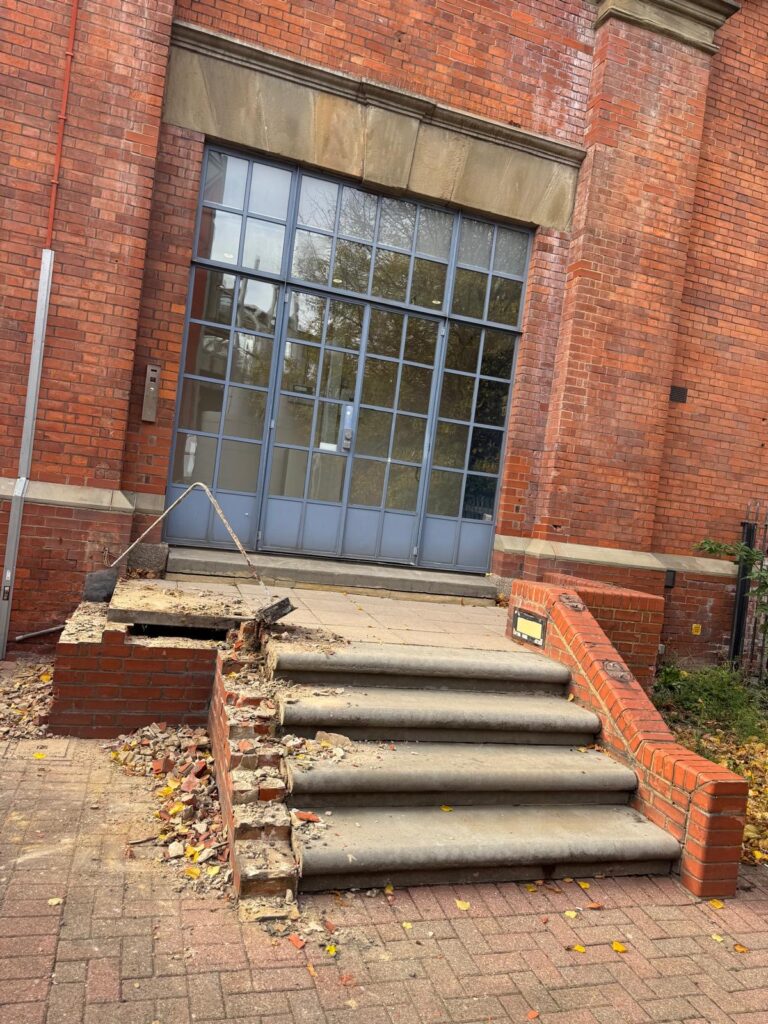 The site was secured with 2.4m plywood hoardings with vehicular gates installed and the buildings were fully scaffolded on all elevations and clad in monarflex sheeting. Soft strip consisted of the removal of non-structural elements including partitions, floor coverings, doors and frames, M&E plant and pipework, furniture and fixtures and fittings.