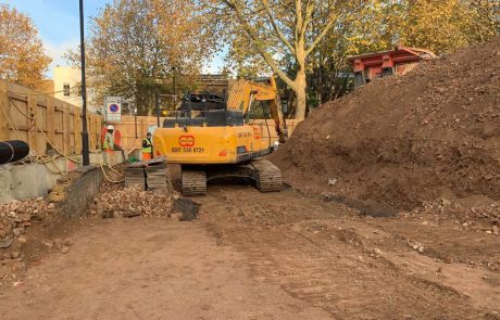 The Church was fully scaffolded and clad in a monarflex sheeting. The building’s high pitched roof and structure was carefully deconstructed manually by operatives working from the scaffold. Following structural demolition the ground floor slab and foundations were excavated and the site levelled. Over 1800 tonnes of hardcore arisings were crushed on site to 62F grade and used to lay the piling mat for the build phase.