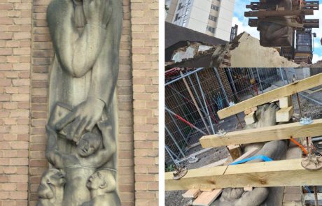 The deconstruction and groundworks phases were subject to an archaeological watching brief by Pre-Construct Archaeology Limited and the careful removal of a time capsule as well as a heritage sculpture ‘The Word’ by Edward Bainbridge Copnall which had been carved from bomb-damaged stone in 1951 and mounted into the church’s wall following the destruction of the original building by a V2 rocket in 1945. The sculpture, which will be displayed on the new development, was carefully removed by operatives and enclosed in a protective timber frame for safe storage.