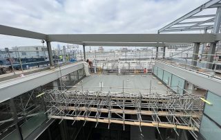 The roof works required crane works and temporary works to allow for the removal of slabs, staircases and the roof structure. The removal made way for the building of an eighth floor and rooftop terraces.