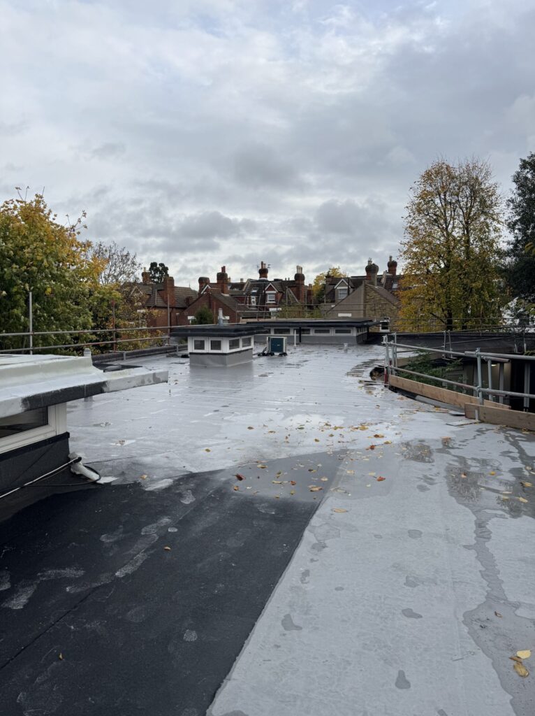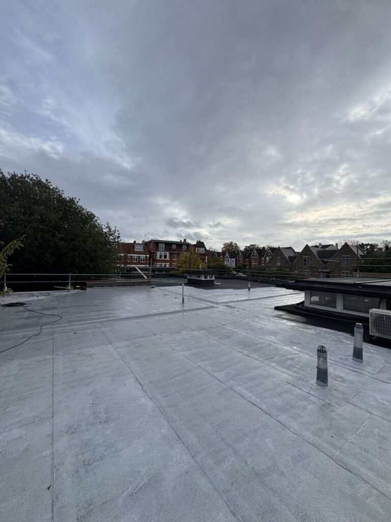 To achieve this, we will apply The P2 Ultra Low Odour Cold Applied Roofing System directly over the existing roof covering. This high-performance, cold-applied system offers excellent waterproofing properties while eliminating the need for hot works or a full roof replacement.