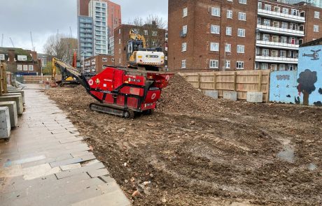 The hardcore waste from the building and foundations was crushed on site and left for the next phase of the project.